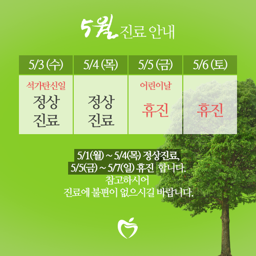 5월 3일 수요일 - 석가탄신일에 정상 진료합니다.